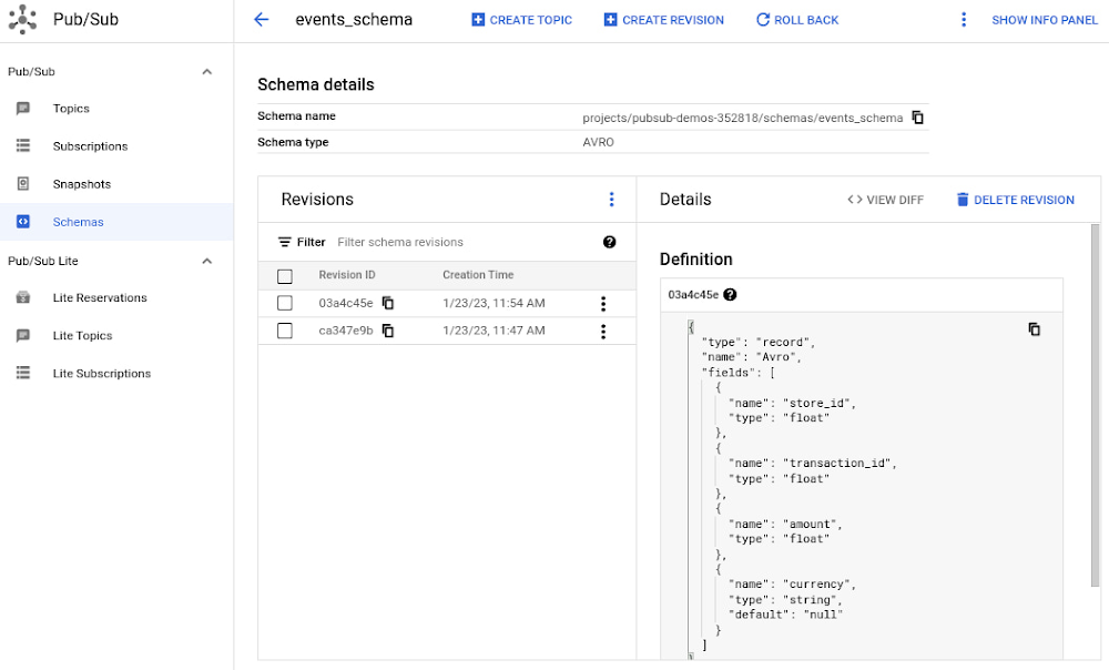 Pub/Sub schemas are designed to allow safe, structured communication between publishers and subscribers. In particular, the use of schemas provides that guarantee that any message published adheres to a schema and encoding, which the subscriber can rely on when reading the data. Schemas tend to evolve over time. For example, a retailer is capturing web events and sending them to Pub/Sub for downstream analytics with BigQuery. The schema now includes additional fields that need to be propagated through Pub/Sub. Up until now Pub/Sub has not allowed the schema associated with a topic to be altered. Instead, customers had to create new topics. That limitation changes today as the Pub/Sub team is excited to introduce schema evolution, designed to allow the safe and convenient update of schemas with zero downtime for publishers or subscribers.Schema revisionsA new revision of schema can now be created by updating an existing schema. Most often, schema updates only include adding or removing optional fields, which is considered a compatible change.All the versions of the schema will be available on the schema details page. You are able to delete one or multiple schema revisions from a schema, however you cannot delete the revision if the schema has only one revision. You can also quickly compare two revisions by using the view diff functionality.Topic changesCurrently you can attach an existing schema or create a new schema to be associated with a topic so that all the published messages to the topic will be validated against the schema by Pub/Sub. With schema evolution capability, you can now update a topic to specify a range of schema revisions against which Pub/Sub will try to validate messages, starting with the last version and working towards the first version. If first-revision is not specified, any revision <= last revision is allowed, and if last revision is not specified, then any revision >= first revision is allowed.Schema evolution exampleLet’s take a look at a typical way schema evolution may be used. You have a topic T that has a schema S associated with it. Publishers publish to the topic and subscribers subscribe to a subscription on the topic:Now you wish to add a new field to the schema and you want publishers to start including that field in messages. As the topic and schema owner, you may not necessarily have control over updates to all of the subscribers nor the schedule on which they get updated. You may also not be able to update all of your publishers simultaneously to publish messages with the new schema. You want to update the schema and allow publishers and subscribers to be updated at their own pace to take advantage of the new field. With schema evolution, you can perform the following steps to ensure a zero-downtime update to add the new field:1. Create a new schema revision that adds the field.2. Ensure the new revision is included in the range of revisions accepted by the topic.3. Update publishers to publish with the new schema revision.4. Update subscribers to accept messages with the new schema revision.Steps 3 and 4 can be interchanged since all schema updates ensure backwards and forwards compatibility. Once your migration to the new schema revision is complete, you may choose to update the topic to exclude the original revision, ensuring that publishers only use the new schema.These steps work for both protocol buffer and Avro schemas. However, some extra care needs to be taken when using Avro schemas. Your subscriber likely has a version of the schema compiled into it (the “reader” schema), but messages must be parsed with the schema that was used to encode them (the “writer” schema). Avro defines the rules for translating from the writer schema to the reader schema. Pub/Sub only allows schema revisions where both the new schema and the old schema could be used as the reader or writer schema. However, you may still need to fetch the writer schema from Pub/Sub using the attributes passed in to identify the schema and then parse using both the reader and writer schema. Our documentation provides examples on the best way to do this.BigQuery subscriptionsPub/Sub schema evolution is also powerful when combined with BigQuery subscriptions, which allow you to write messages published to Pub/Sub directly to BigQuery. When using the topic schema to write data, Pub/Sub ensures that at least one of the revisions associated with the topic is compatible with the BigQuery table. If you want to update your messages to add a new field that should be written to BigQuery, you should do the following:1. Add the OPTIONAL field to the BigQuery table schema.2. Add the field to your Pub/Sub schema.3. Ensure the new revision is included in the range of revisions accepted by the topic.4. Start publishing messages with the new schema revision.With these simple steps, you can evolve the data written to BigQuery as your needs change.Quotas and limitsSchema evolution feature comes with following limits:20 revisions per schema name at any time are allowed.Each individual schema revision does not count against the maximum 10,000 schemas per project.Additional resourcesPlease check out the additional resources available at to explore this feature further:DocumentationClient librariesSamplesQuotas